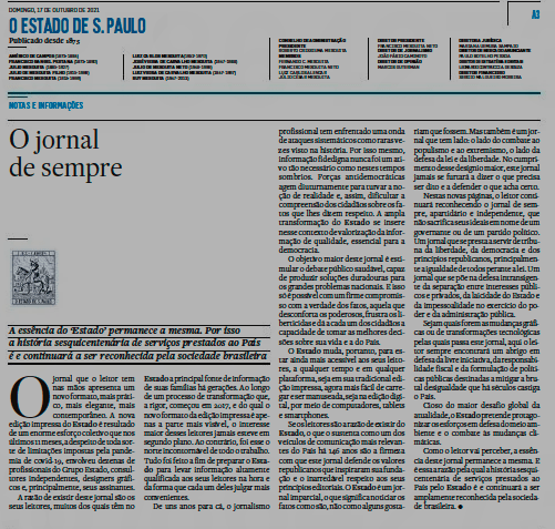Portanto, embora o formato tabloide seja muito simpático, é bastante sintomático que logo o Estadão o adote, e justamente agora, onde vivemos uma crise econômica, outra sanitária e a crise específica do setor das comunicações, que é independente dessas outras duas e, para o meio, ainda mais letal que estas.